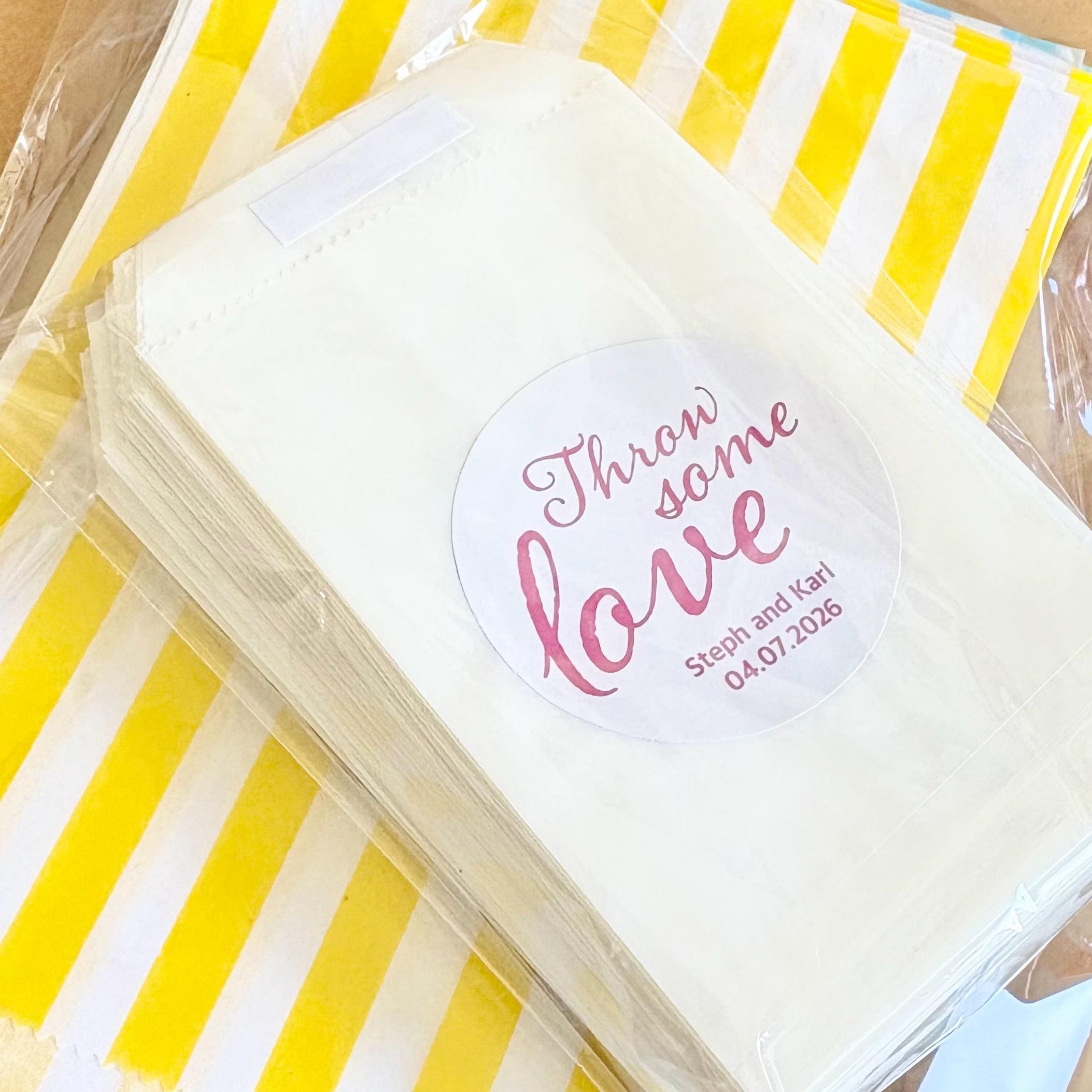 Each pack has with a self seal tab and will hold a handful of confetti.