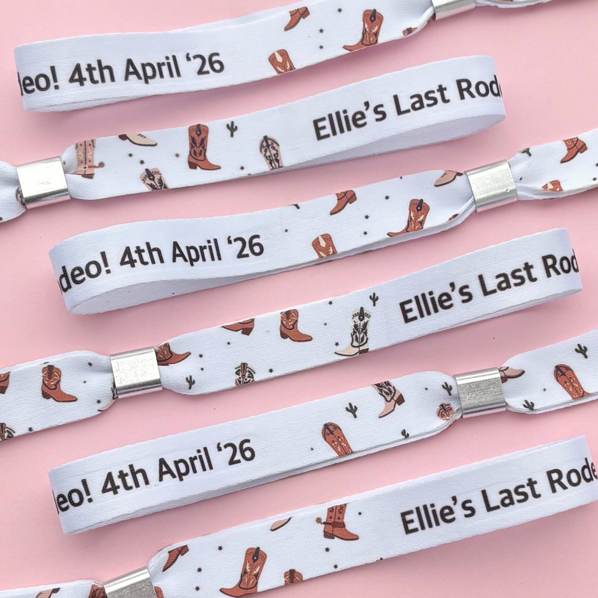 When ordering wristbands select the number you require from the drop down menu, if the amount you need isn’t listed for example 55 add 50 then 5 to your basket before checkout (this will not affect postage).