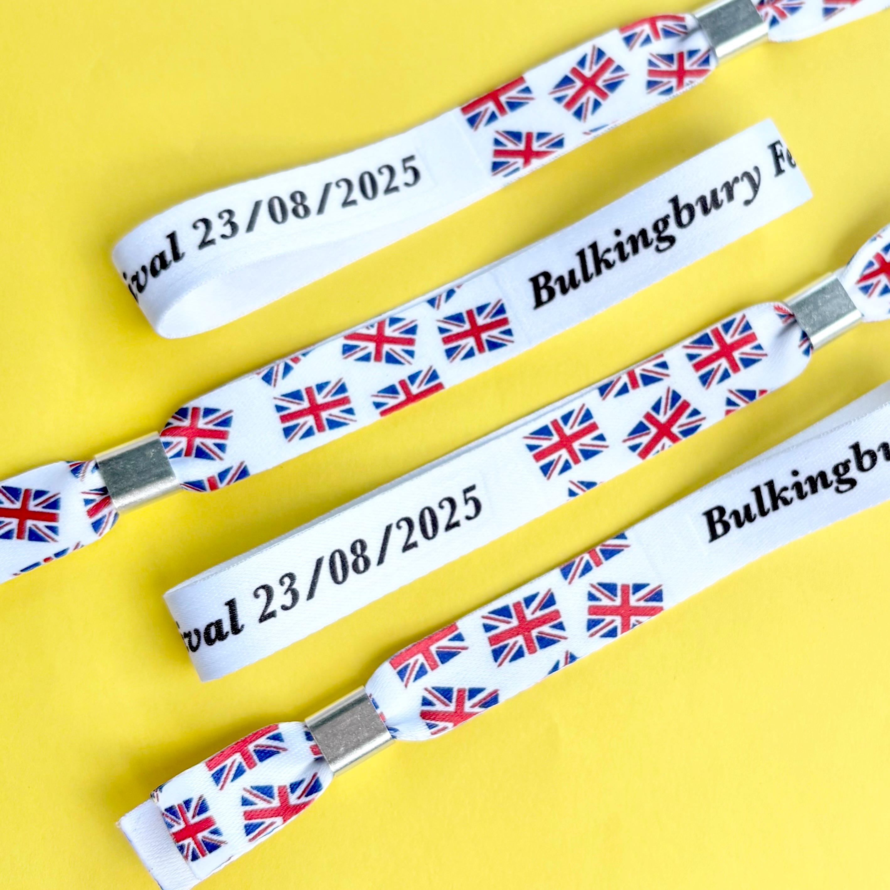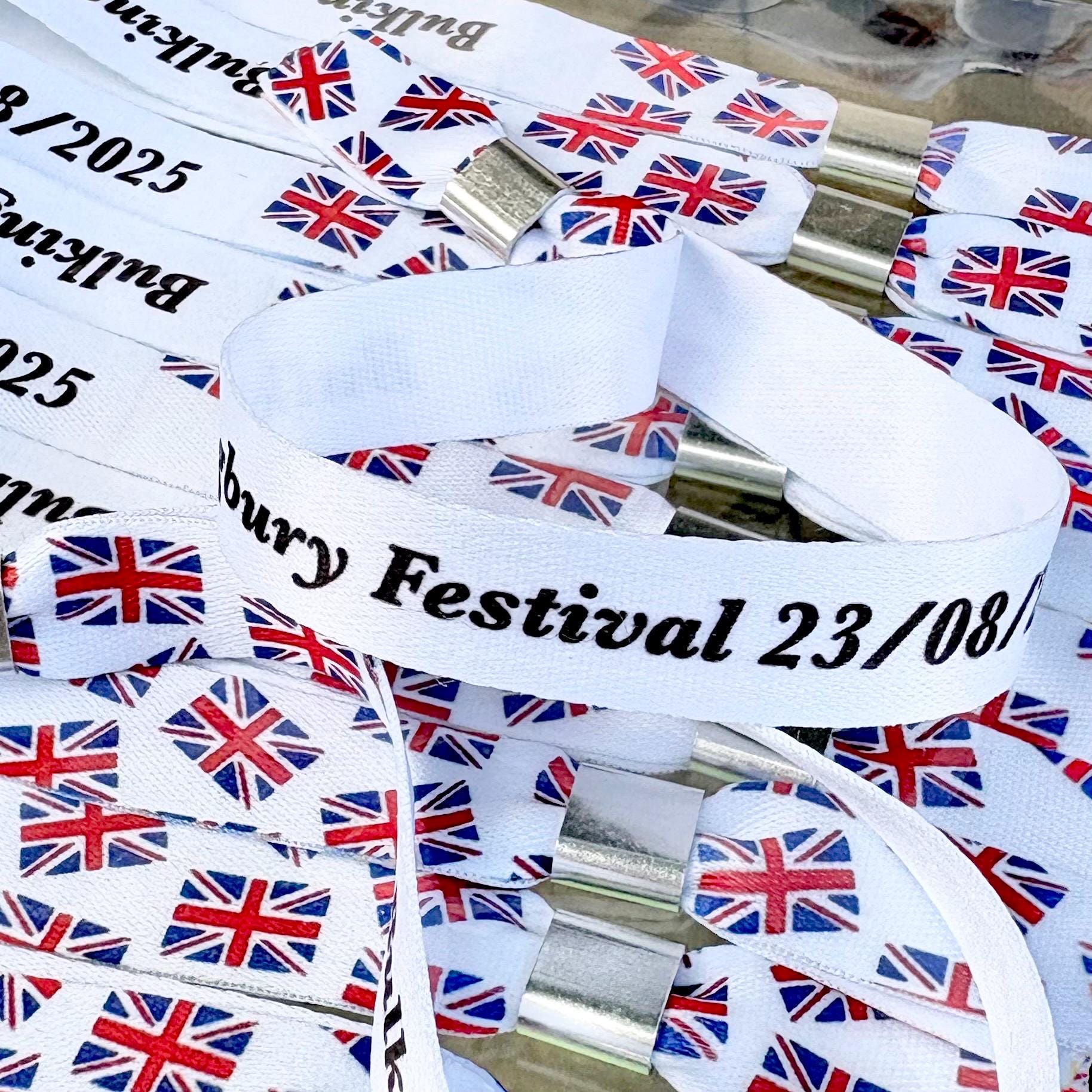 Personalised fabric wristbands | Add any text | Wedding wristbands | Union Jack flag Festival wristbands | reusable wristbands
